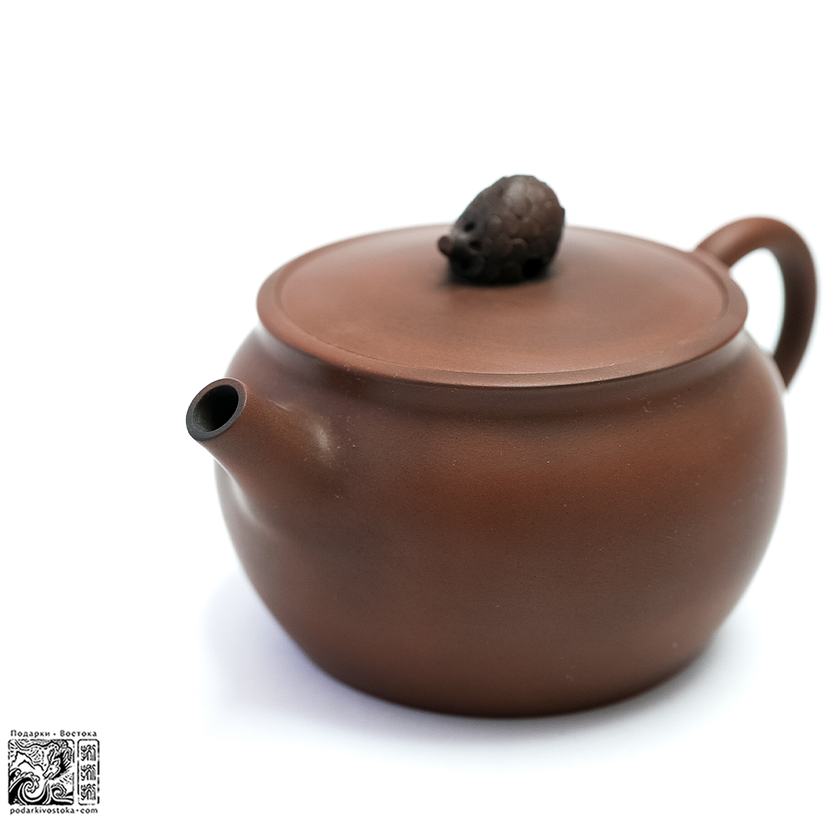 Крышку чайника украшает удобная декоративная ручка в виде шишки.